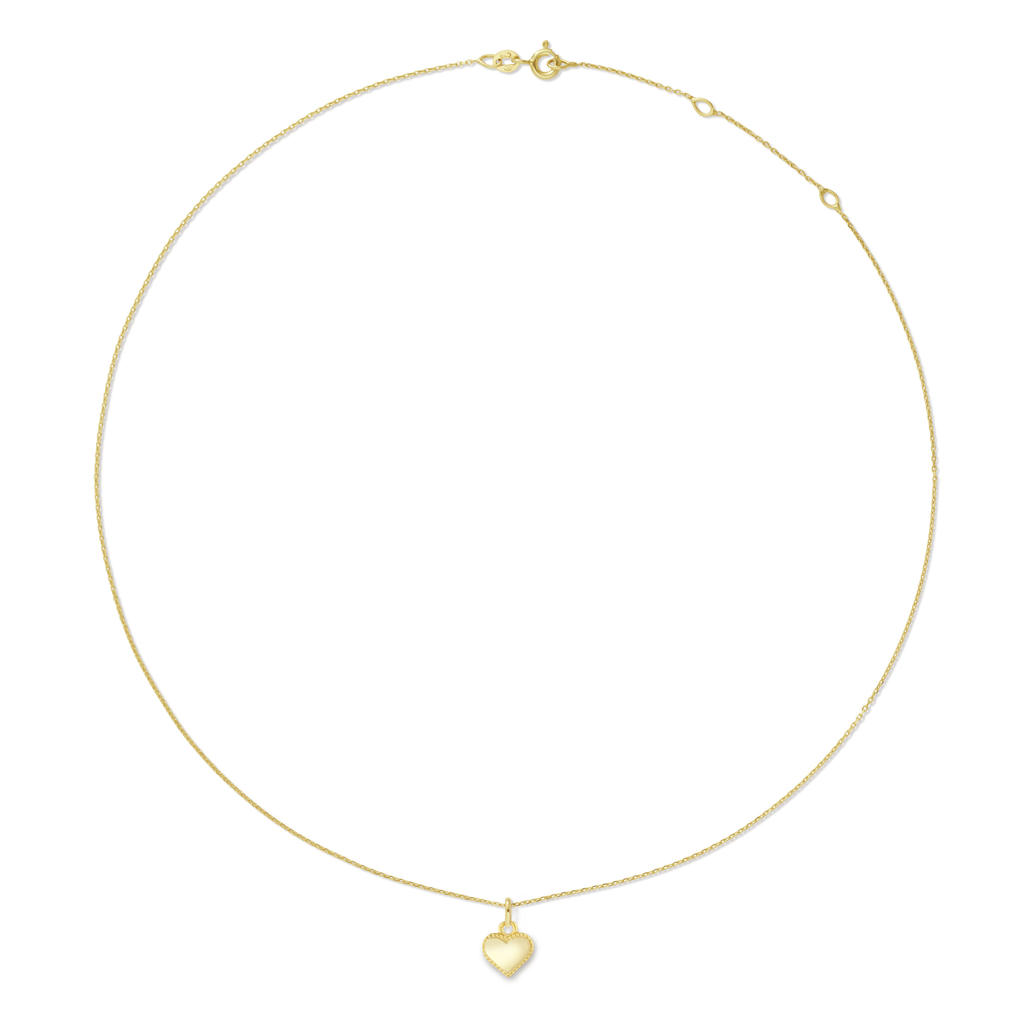 Das perfekte Geschenk für einen besonderen Menschen in deinem Leben: diese zarte Halskette aus 14-karätigem Gold mit einem leicht gewölbten, hängenden Herz. Das Herz ist am Rand mit kleinen Noppen verziert. Tipp: Es gibt auch passende Ohrstecker.