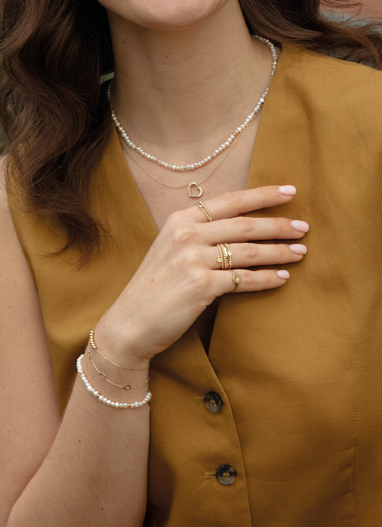 Feiner 14-Karat-Schmuck, der sich auf das Schichten und Stapeln konzentriert: Jackie! Jedes Design ist zeitlos und raffiniert, handgefertigt mit echtem Handwerk.