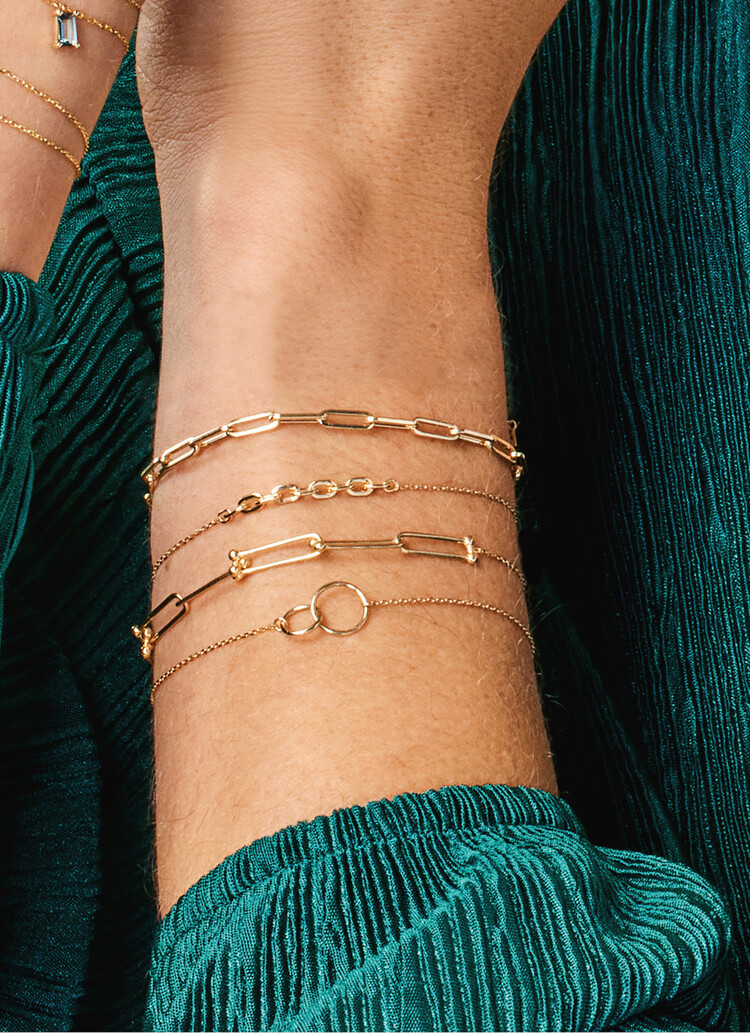 Feine 14 Karat Schmuckstücke, bei denen das Schichten und Stapeln im Mittelpunkt steht: Jackie! Jedes Design ist zeitlos und raffiniert, handgefertigt mit echtem Handwerk. Für die Jackie-Kollektion ließ ich mich von Frauen in den lebhaftesten Städten der Welt inspirieren. Für Schmuck gilt nur eine Regel: 'Mehr ist mehr'. Kreieren Sie die schönsten Kombinationen! Drei Halsketten, zwei Armbänder und sechs Ringe an einer Hand sind keine Ausnahme.