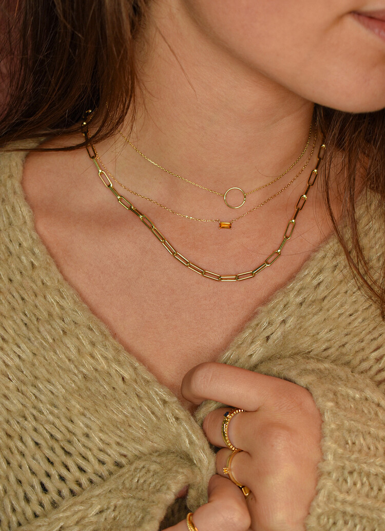 • Die Kreissilhouette-Halskette ist aus 14 Karat Gold gefertigt. Trendig und minimalistisch, dieses Design von Jackie ist ein Muss für jede Schmuckschatulle. Kombinieren Sie die Kette mit einigen von Jackies anderen Ketten für den schönsten Look.