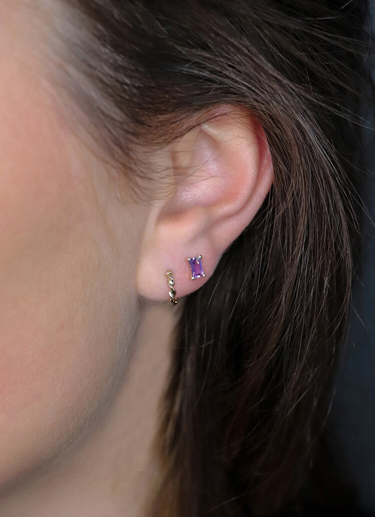 Die Jackie Medina Amethyst Stecker aus 14 Karat Gold enthalten einen Amethyst. Der violette Edelstein ist für seine schützende Wirkung bekannt. Schön für sich allein, aber auch wunderbar in Kombination mit anderen Ohrringen aus der Jackie Kollektion.