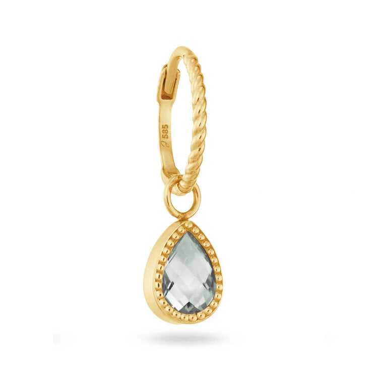 This earring with real gemstone, London Blue Topaz, White Topaz, or Green Amethyst, sparkles in the sun. It really completes your ear party! Good to know: This 14k gold hoop earring is handmade and totally Cape Town.