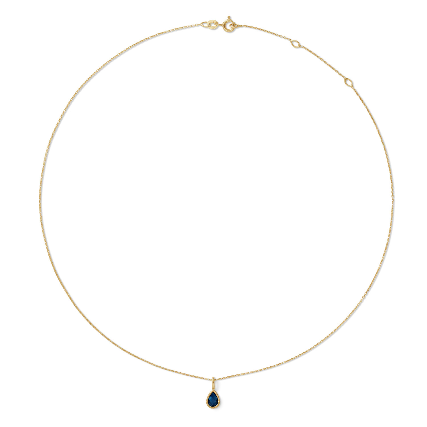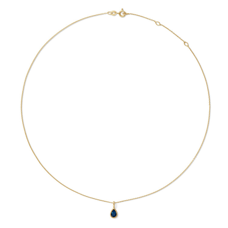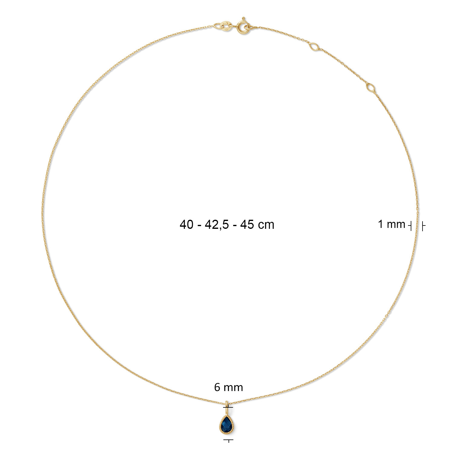 This 14 karat gold necklace moves subtly with you—it's a swinging necklace. The London Blue topaz sparkles in the sun. Please note: gemstones are natural products; colour or shape may vary. That’s what makes it unique!