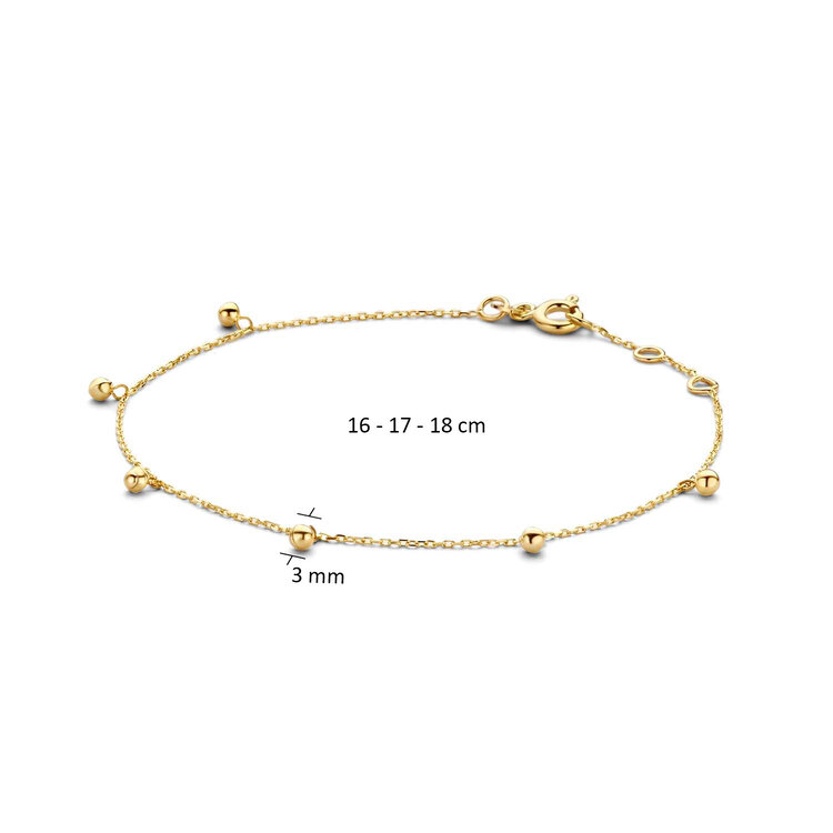 The Bubbles bracelet is made of 14 karat gold. The subtle golden beads on the bracelet create a sparkling effect. Combine the bracelet with some of my other bracelets for the most beautiful look.