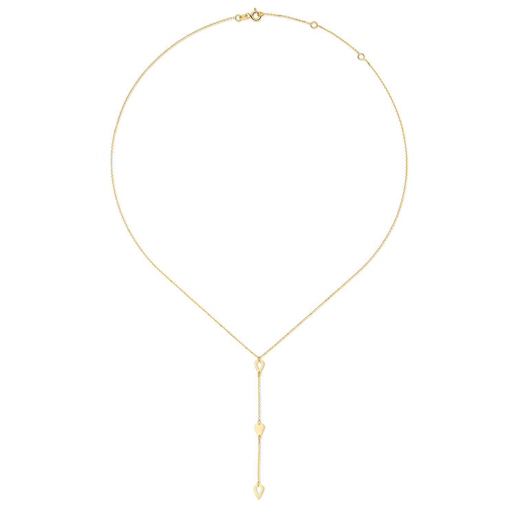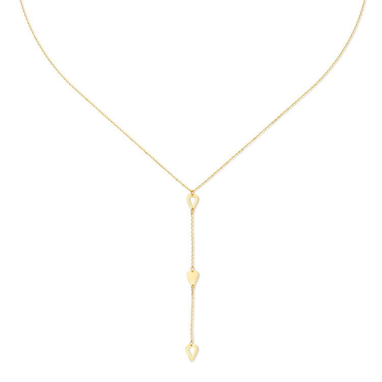 Say what you want with this 14-karat gold Cheek-Y Drop necklace. A real eye-catcher as the gold Y-necklace has 1 solid and 2 openwork drops. Create a beautiful Jackie layer with two more Jackie necklaces!