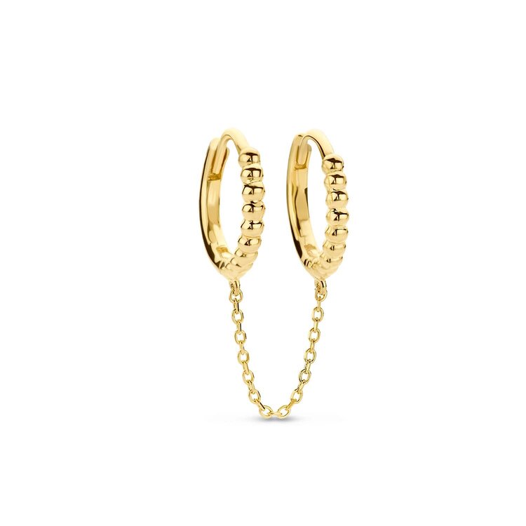 • The 14-karat gold Círculo Doble Single Earring is a beautiful addition to your earring collection! Designed to be worn in two ear piercings. Combine them with your favorite studs to complete your look.