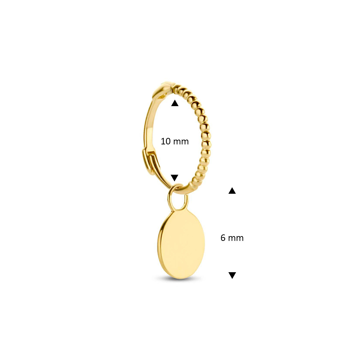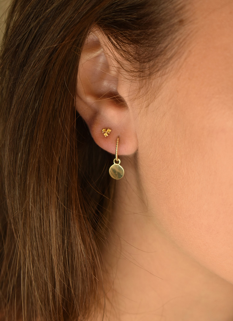 • The Fez Disc Hoop is made of 14 karat gold. Do you love subtle and delicate earrings? Then this piece of jewelry is perfect for you! The single ear stud with disc is timeless and beautifully combinable with your other Jackie favorites.