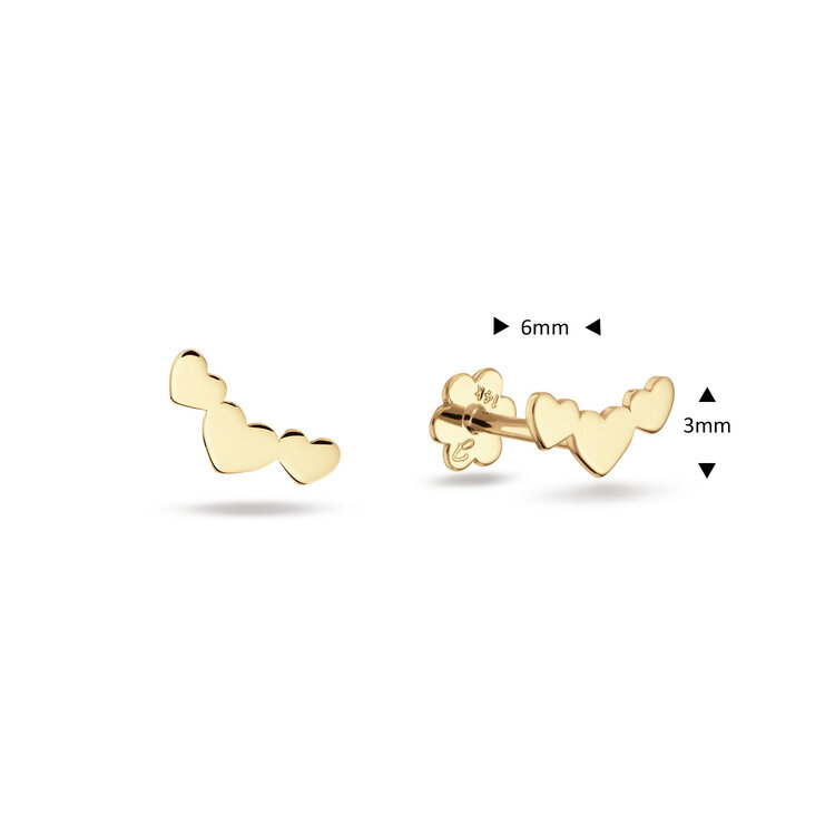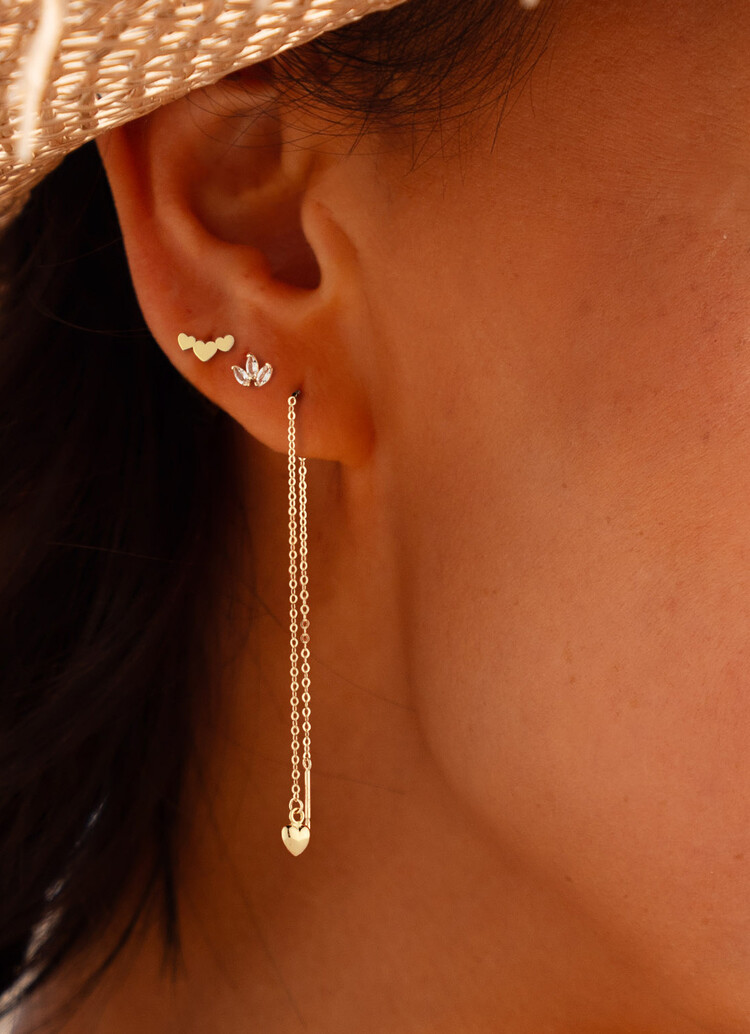 • L’amour est dans l’air… et aussi dans vos oreilles ! Ces trois petits cœurs en or 14 carats sont de véritables accroche-regards. Ce piercing est un modèle dit « climber », ce qui signifie qu’il se porte le long de la courbe de votre oreille.