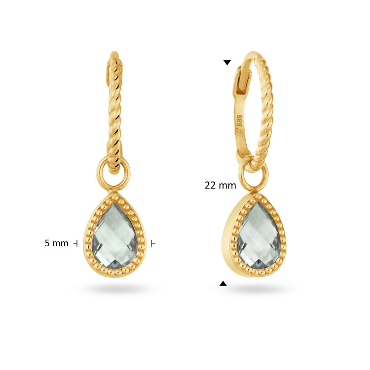 Ces boucles d’oreilles en or 14 carats sont ornées d’une véritable pierre (topaze bleu London, topaze blanche ou améthyste verte) et scintillent au soleil. Attention : les pierres sont naturelles ; couleurs et formes peuvent varier. Cela les rend uniques.