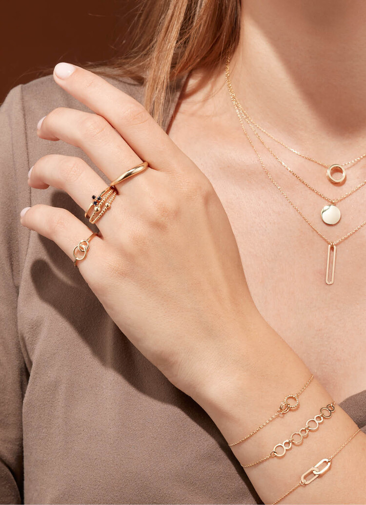 Bijoux fins en or 14 carats, axés sur la superposition et l'empilement : Jackie ! Chaque design est intemporel et raffiné, fabriqué à la main avec un véritable savoir-faire artisanal.