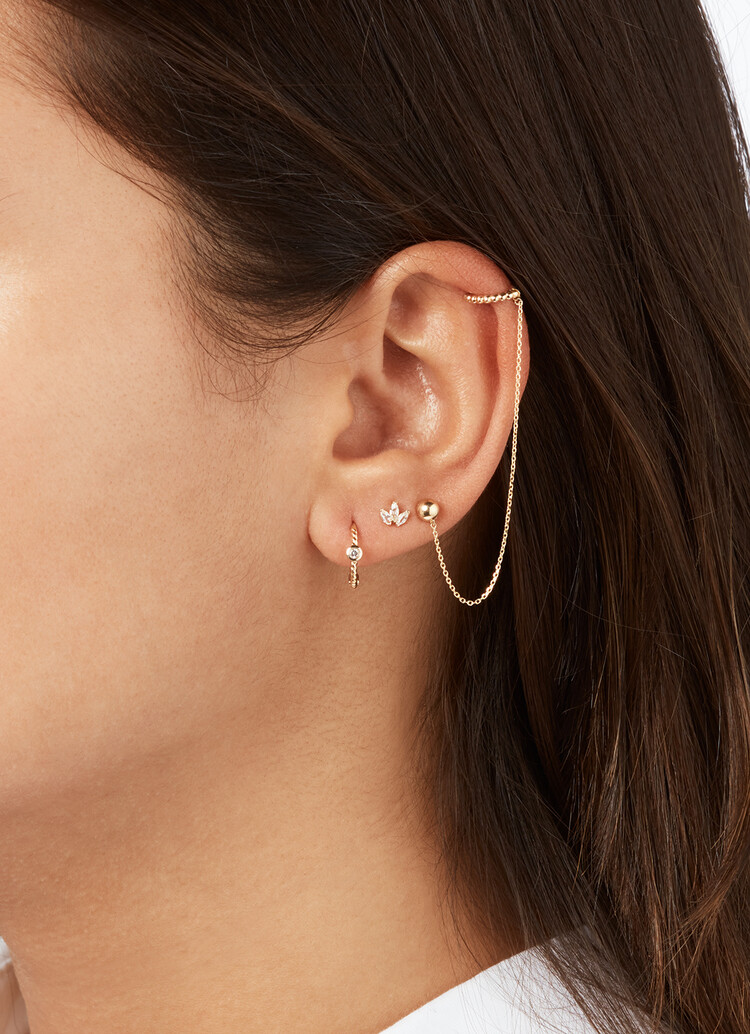 Les clous d'oreilles en or 14 carats de Jackie Brise de Palmier en Topaze Blanc contiennent des pierres précieuses étincelantes de topaze blanche. Ces clous d'oreilles peuvent être portés seuls ou combinés avec d'autres boucles d'oreilles Jackie.