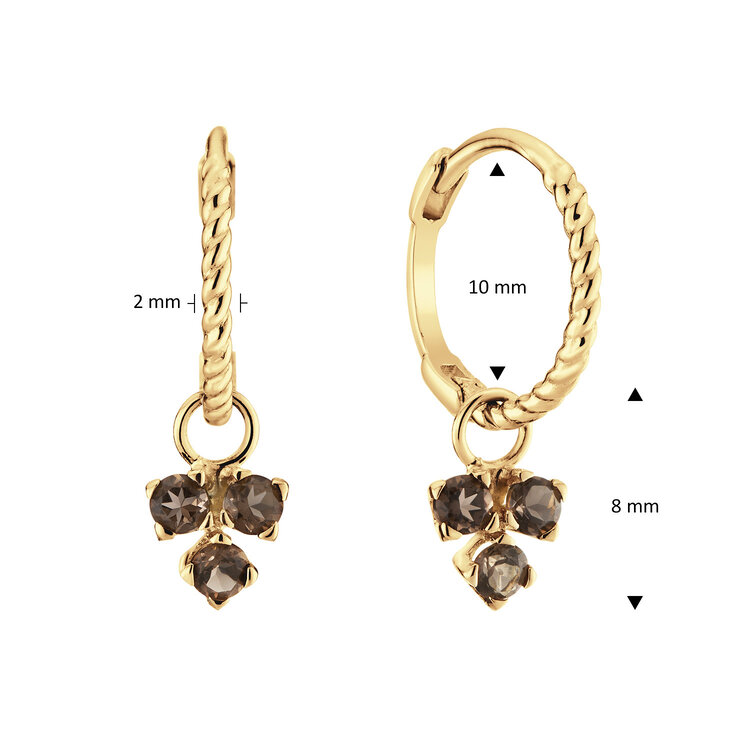 Les boucles d'oreilles en Triangle Quartz Fumé sont en or 14 carats et contiennent une pierre précieuse de quartz fumé étincelante. Cette pierre aide à se détendre, lâcher prise et accepter. Un bel ajout à votre fête de l'oreille !