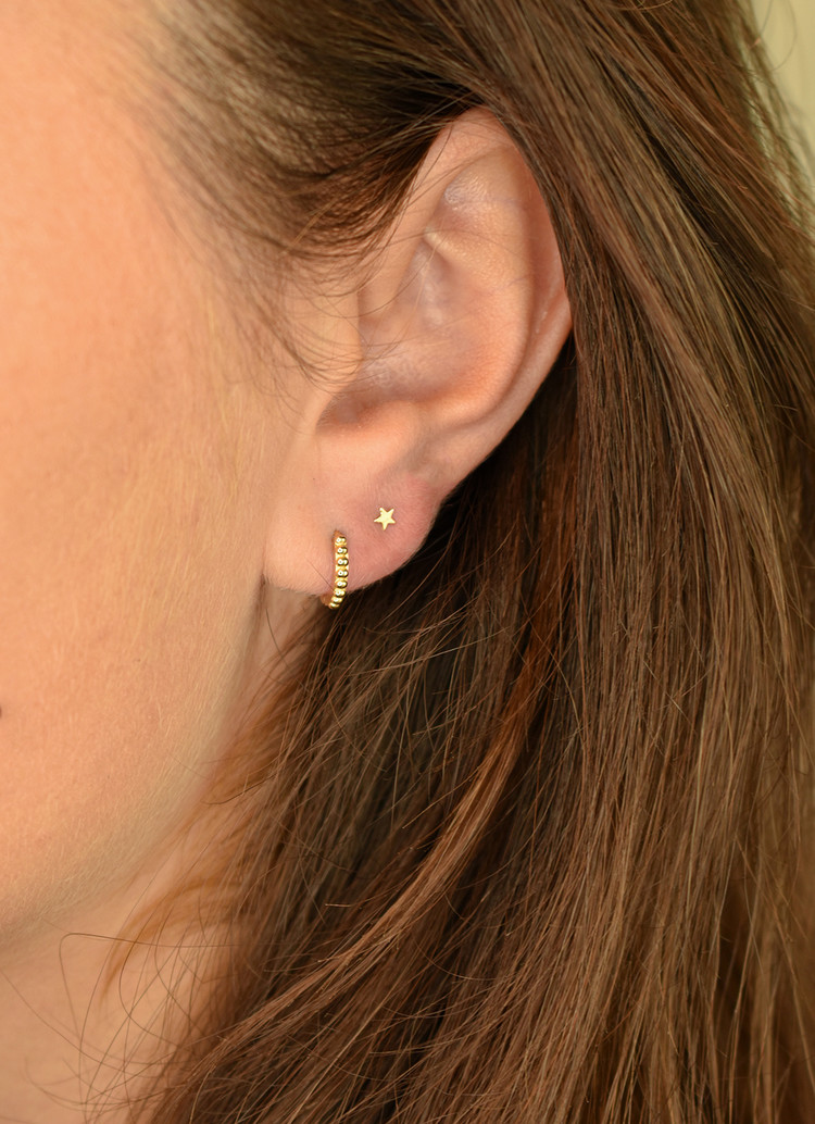 • Clous d'oreilles Mini Étoile en or 14 carats. Les boucles en forme d'étoile sont parfaites à mélanger avec d'autres boucles d'oreilles. Ces petites boucles conviennent également en tant que piercings pour un helix.
