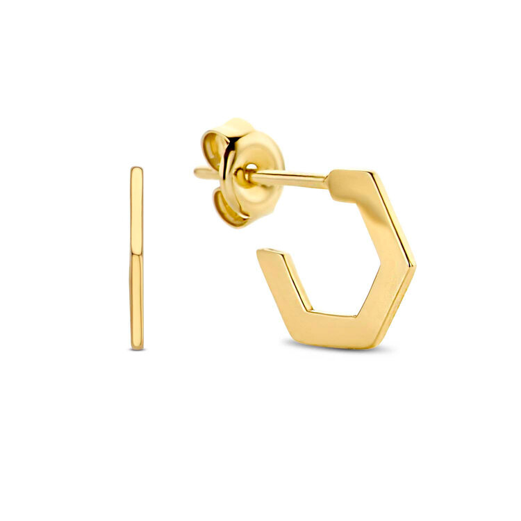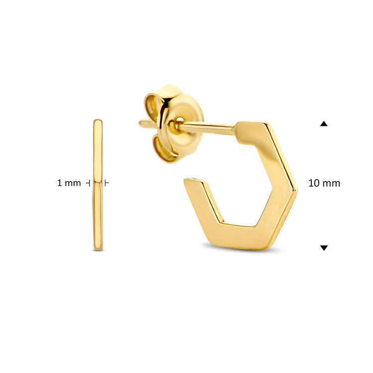 • Les clous d'oreilles plates hexagonales sont en or 14 carats. Ces boucles d'oreilles plates en forme d'hexagone sont de véritables accroche-regards dans vos oreilles!