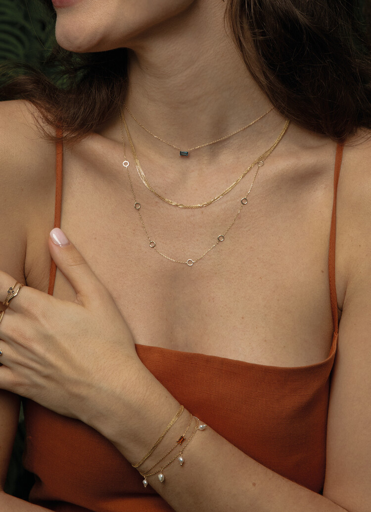 • Le collier Casade en or 14 carats de Jackie est un véritable accroche-regard ! Il est composé de cinq chaînes et apporte du volume supplémentaire à votre superposition. Associez-le avec le bracelet Casade assorti et optez pour le look ultime de Jackie.