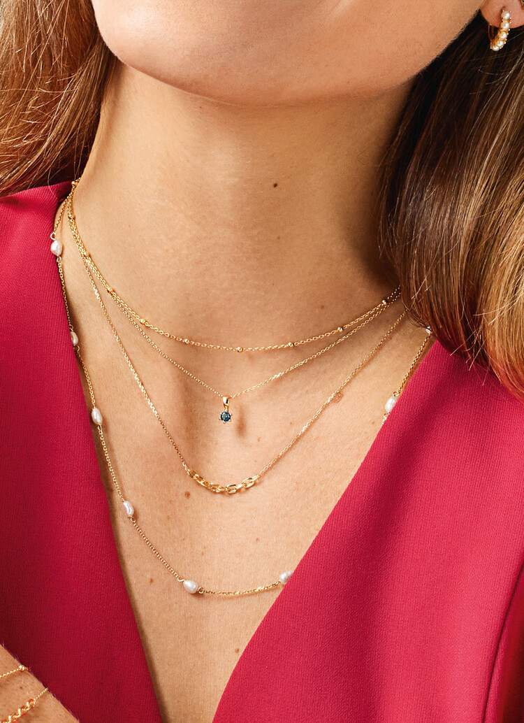 • Le collier Positano en or 14 carats de Jackie est un incontournable de votre collection de bijoux ! Son design intemporel en fait le parfait complément à n'importe quel autre bijou de la collection. Également magnifique associé au bracelet assorti.