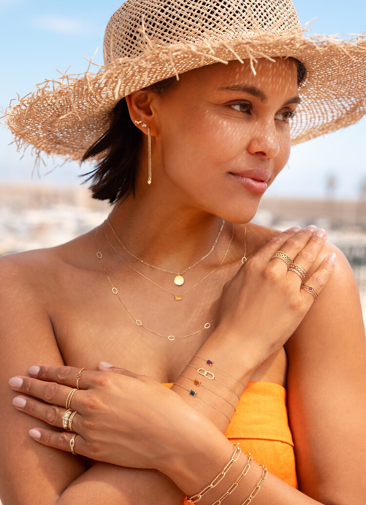 Elke creatie in de Hidden Gems of the Rivièra collectie is een ode aan de onmiskenbare charme van de Rivièra. Handgemaakt van 14 karaat goud en verrijkt met echte edelstenen, De sieraden brengen de magische sfeer van de Côte d'Azur tot leven in jouw look!