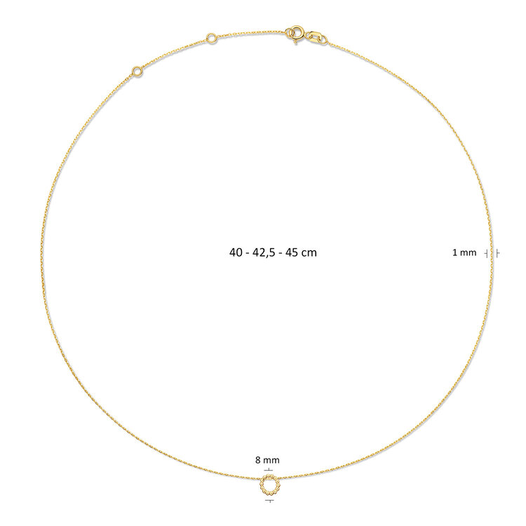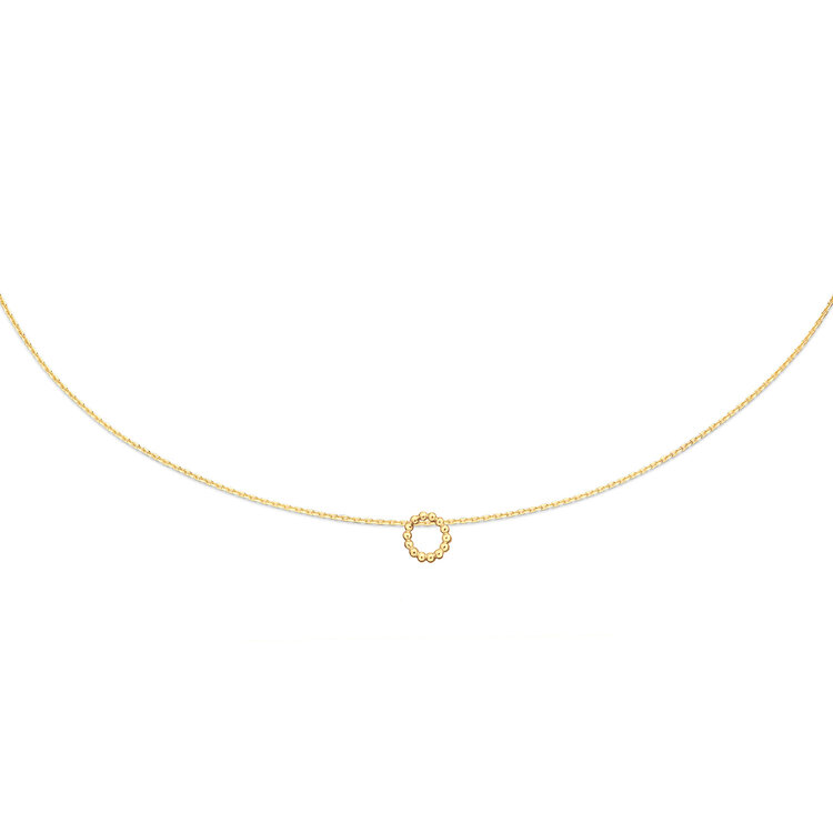 • De 14 karaat gouden Bubbly Circle ketting van Jackie swingt met al je lichaamsbewegingen mee. Hierdoor hangt de ketting altijd recht in het midden. Combineer met twee andere Jackie kettingen en ga voor de perfecte layer!