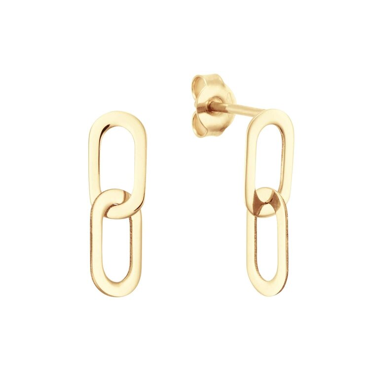 • Een eyecatcher als toevoeging aan jouw earparty: dat zijn de Cannaregio oorstekers. De 14 karaat geelgouden paperclip-schakels schitteren in de zon en zijn prachtig te combineren met de bijpassende ketting en armband.
