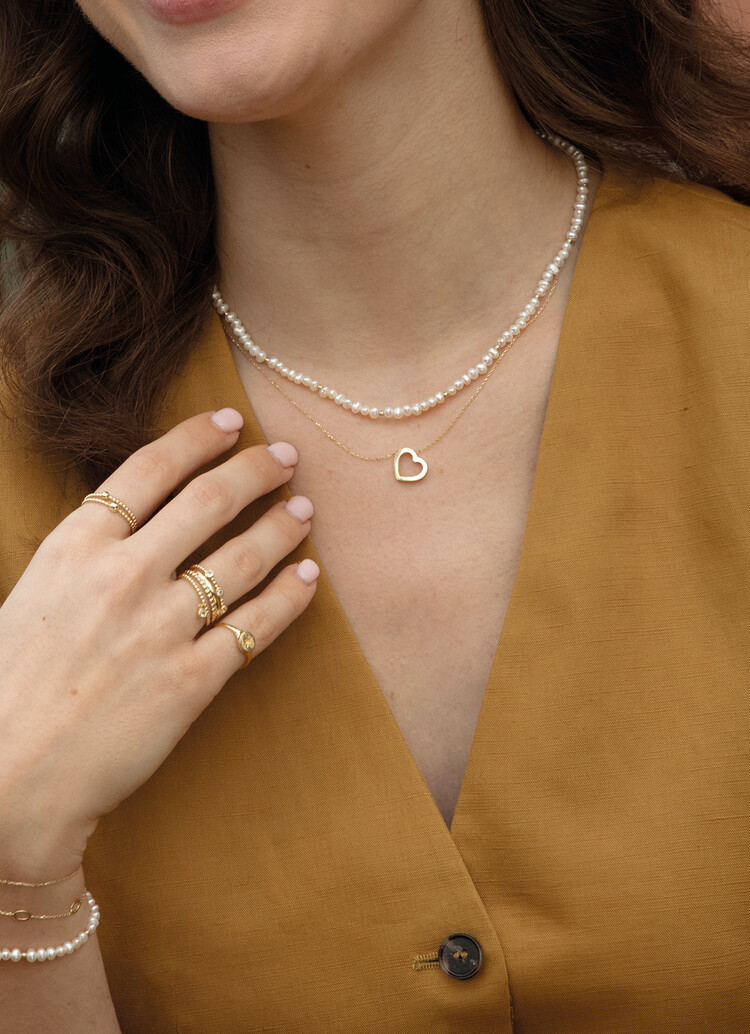Fijne 14 karaat sieraden, waarbij layering en stacking centraal staan: Jackie! Elk ontwerp is tijdloos en verfijnd, handgemaakt met echt vakmanschap.Let op: Parels zijn de perfecte finishing touch van je look, maar ze zijn ook gevoelig. Om je parels in goede conditie te houden adviseer ik deze af te doen tijdens het douchen. Producten als shampoo, douchegel, maar ook parfum en haarlak kunnen de parels aantasten. Finish je look af met een parel - doe deze als laatste om én als eerste af.