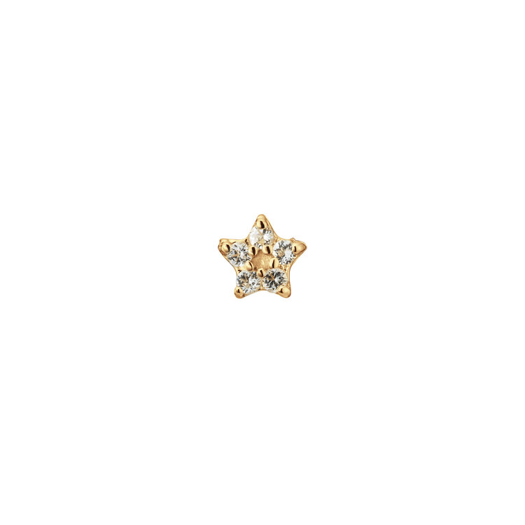• De 14 karaat gouden Star White Topaz piercing met 2 schroefstaafjes en een bloemetje als achterkant, maken het in- en uitdoen heel makkelijk! Je kunt ze ook inhouden als je gaat slapen. Voeg als finishing touch een piercing toe aan je Jackie earparty!